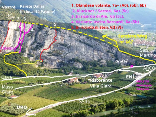 Bei der Parete Dallas (oder Parete in Località Patone) handelt es sich um eine ca. 140 Meter hohe, jedoch sehr